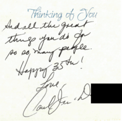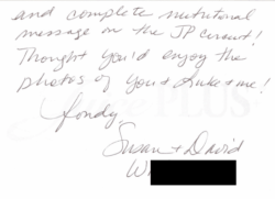 Thank you so very much for the lovely job you did for us both at Grand Valley and Golda's Club’s Club. You were extremely well received and appreciated. I told John B. I thought you gave the most clear and complete nutritional message on the JP circuit! Thought you’d enjoy the photos of you & Luke & me!