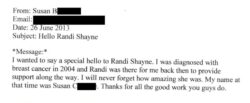 I wanted to say a special hello to Randi Shayne. I was diagnosed with breast cancer in 2004 and Randi was there for me back then to provide support along the way. I will never forget how amazing she was. My name at that time was Susan Cassone. Thanks for all the good work you guys do.