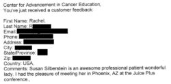 Comments: Susan Silberstein is an awesome professional patient wonderful lady. I had the pleasure of meeting her in Phoenix, AZ at the Juice Plus conference.