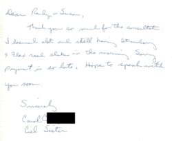 Please send a gift acknowledgement to his spouse: Margaret C. at the Rio Grande address. Thank you.