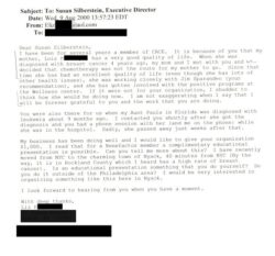My business has been doing well and I would like to give your organization $1,000. I read that for a Benefactor member a complimentary educational presentation is possible. Can you tell me more about this? I have recently moved from NYC to the charming town of Nyack, 40 minutes from NYC (By the way, it is in Rockland County which I heard has a high rate of breast cancer). Is an educational presentation something that you do yourself? Do you do it outside of the Philadelphia area? I would be very interested in organizing something like this here in Nyack.